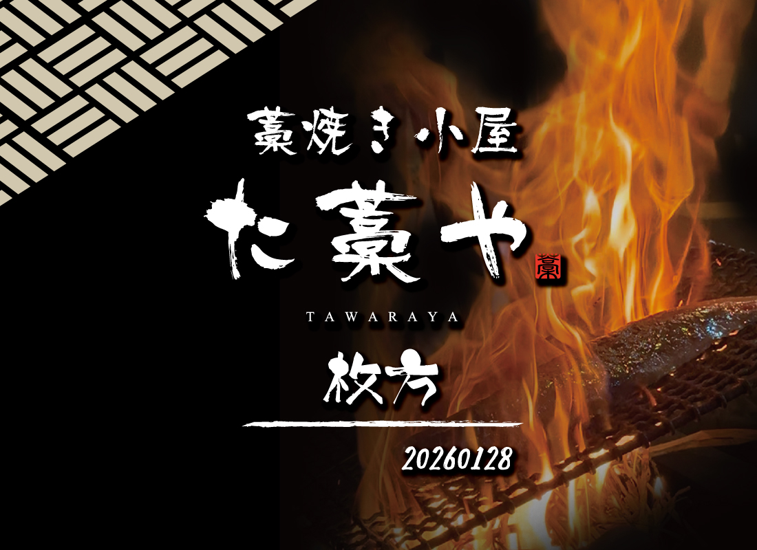 2026年1月28日枚方市駅前にた藁やオープン予定! 〒573-1191 大阪府枚方市新町1-2-10 テイクスリービル2F ☎072-843-8080